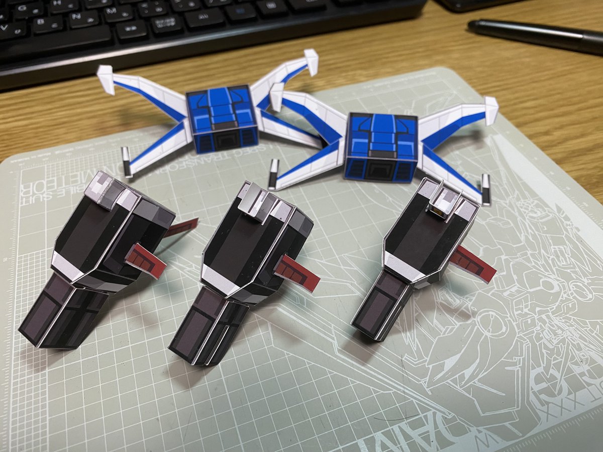 仕事が落ち着いたので作業再開しました。 やっとこ #ダ・ガーンX の調整ができた。 アースキャノンが3つできました(;^_^A ついでにゼンカイオーブルマジーンの調整もできました。 #Papercraft #braveseries #ペーパークラフト #勇者シリーズ