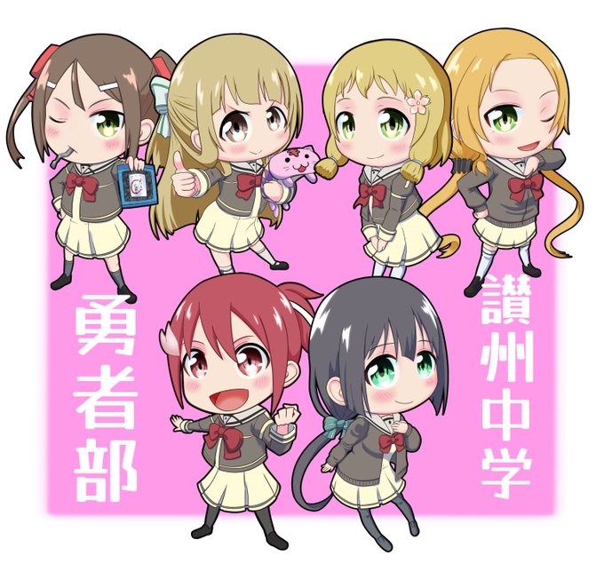 #結城友奈は勇者である #ゆゆゆ #yuyuyu #勇者部 #讃州中学 #イラスト好きな人と繋がりたい #アトリエの系譜S ゆゆゆイラストシリーズ「ちびキャラ編」で勇者部の6人描き終えたので一枚にまとめてみました 実はそれぞれ微調整してる所があり、それはpixivから ↓ pixiv.net/users/374228