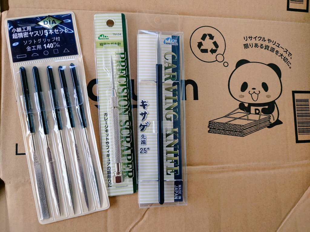たまってた楽天ポイントでスジボリ道具をゲット✌いろいろ道具が欲しくなるのは悪い癖。最近毎日イングラムにいろんなポーズ取らせてはニヤニヤしてる😏びっくりするぐらい関節動いて感動。でも手とか取れやすいパーツは接着しておかないとかな。まずはスジボリだ! #パトレイバー模型部 #勉強中