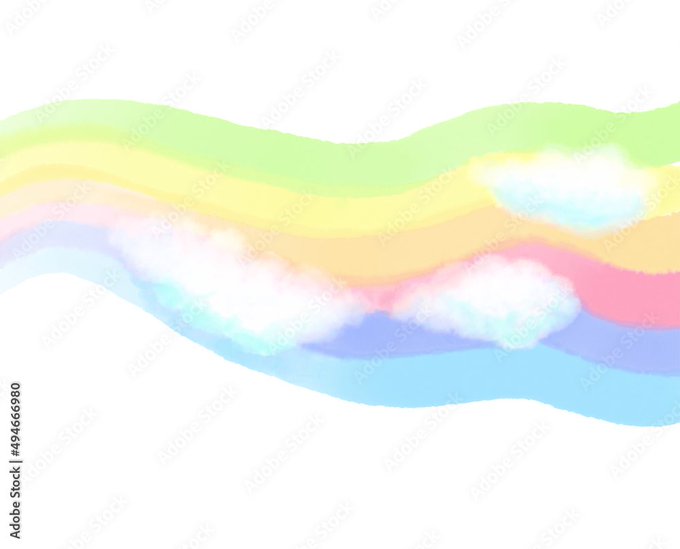 こんな優しいパステルカラーに ふわふわの雲がくっついた虹あります! stock.adobe.com/jp/stock-photo… pixta.jp/illustration/8… #虹 #パステル #可愛い #PIXTA #Adobestock #さささとこ #動物イラストレーター