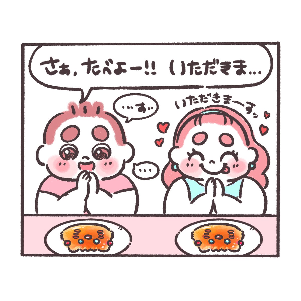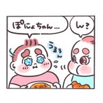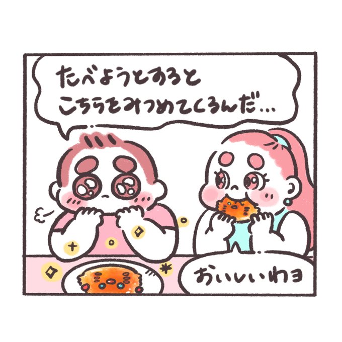 プレイバック★ぽちゃ日和🍟🍩 動物パン🐼🍞🥐 ぽにょ🍟「ごめんねまろくん。撮りたかったよね」 まろ🍩「食べてるぽにょちゃんをあわてて撮りました」 #ぽちゃ日和 #イラスト好きな人と繋がりたい #絵描きさんと繋がりたい #動物パン #パン #カップル漫画