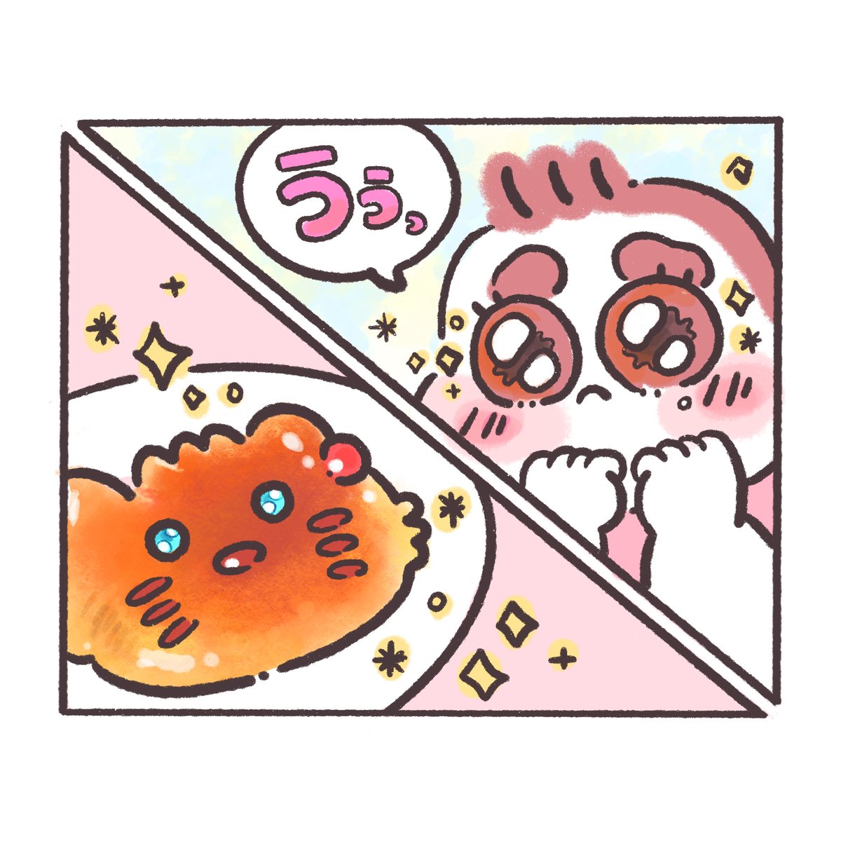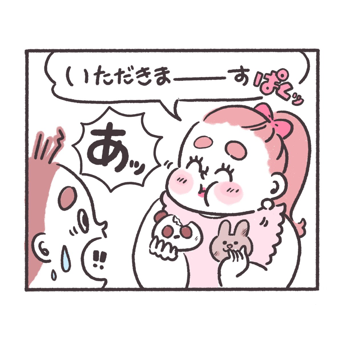 プレイバック★ぽちゃ日和🍟🍩 マカロンちゃんパン🐱🥐2 ぽにょ🍟「まあ2個食べられてラッキー😁♪」 #ぽちゃ日和 #イラスト好きな人と繋がりたい #絵描きさんと繋がりたい #絵柄が好みって人にフォローされたい #パン #動物パン #キャラパン #猫の日