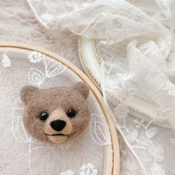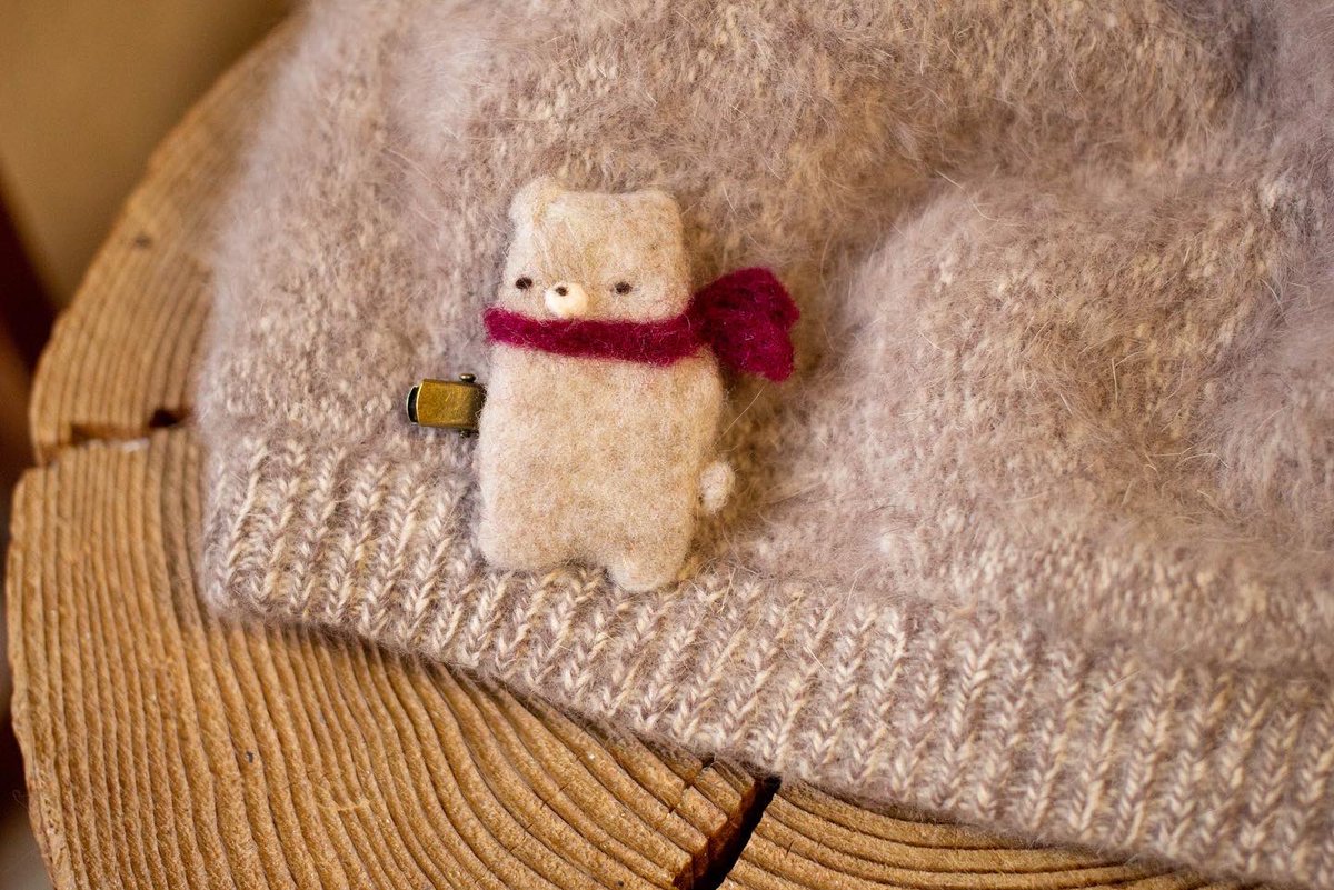 こぐまのブローチ🐻 秋らしい動物を色々作って 10月頃に販売しようかなと 考えております💭🍂 #動物ブローチ #羊毛フェルト #handmade #needlefelting #ハンドメイド好きな人と繋がりたい