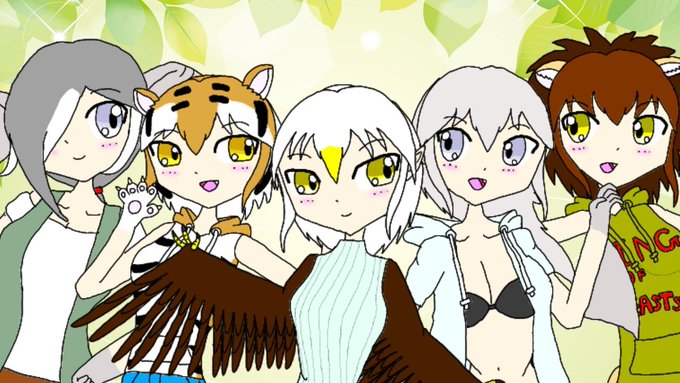イーグル!!シャーク!!ライオン!!エレファント!!タイガー!!本能覚醒!! この5種類の動物の亜人が揃ったので、集合絵を描きました。 #イラスト #イラスト好きな人と繋がりたい #イラスト好きさんと繋がりたい #動物戦隊ジュウオウジャー ? #亜人 #半人半獣 #鷲 #鮫 #ライオン #象 #虎
