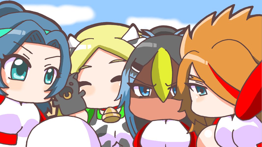 高身長女子集合絵を描かせていただきました!抜けがありましたらすみません! 詩耶とブリアンちゃんとエレスちゃんと翔子ちゃんとパワプロ君、5人で記念写真パチリ! 二枚目は差分です! 詩耶「いい写真が撮れたな!」 パワプロ君「…俺入ってないんだけど」 #勝手にパワプロオリキャラファンアート