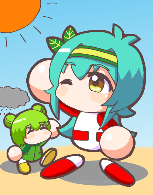榎内さん(@enouchi)の成光 双葉ちゃんお借りしました! 設定を見た瞬間にこれは雨河エル(雨女)と一緒に描きたいと思い描かせていただきました 双葉ちゃん「今日もいい天気!」 エル「双葉ちゃーん!」 (無情にも近づく雨雲) #勝手にパワプロオリキャラファンアート