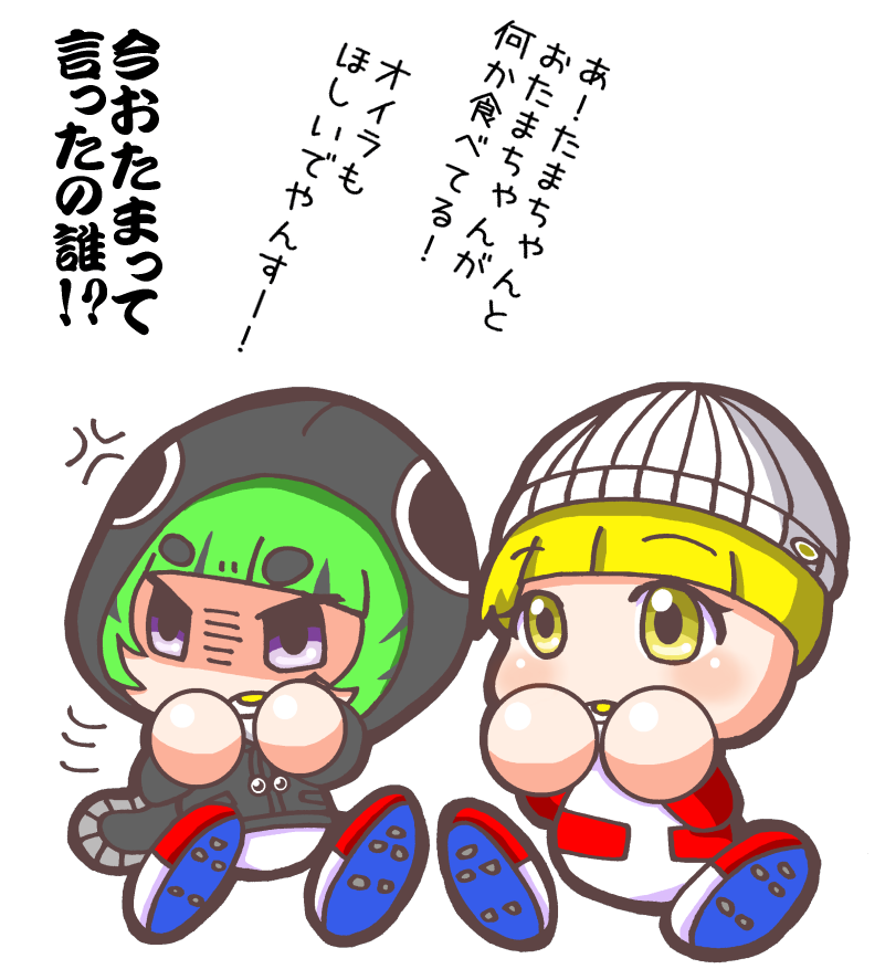 かまくらさん(@kamakura_pawa)の城君 たまちゃんお借りしました! 名前が似ているつながりで描いてみました! ゆでたまごを二人ではんぶんこ! #勝手にパワプロオリキャラファンアート