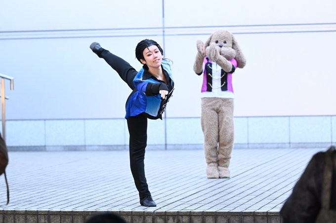 【COS:YOI】オフショ(?) 撮影する前に 柔軟していいですか⸜( ◜࿁◝ )⸜ って体ほぐしてる間に 素敵に撮って頂いてた🥹✨ ストレッチ勝生勇利:おまめ photo:よっしーさん #ビビコス #ビビコス日本ガイシアリーナ