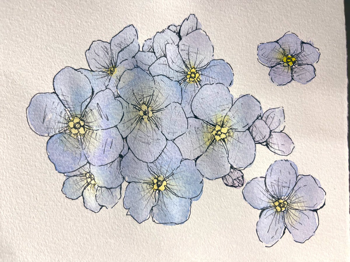2020年7月15日目 2021年に、2020年の水彩画のイベントのお題に挑戦中 【お題】 15. FORGOTTEN 忘れた 忘れないように描く #illustration #透明水彩 #水彩画 #Watercolor #watercolorpainting #アナログ絵 #一日一絵 #毎日絵 #イラスト好きと繋がりたい #イラスト #忘れな草 #勿忘草 #Vergissmeinnicht