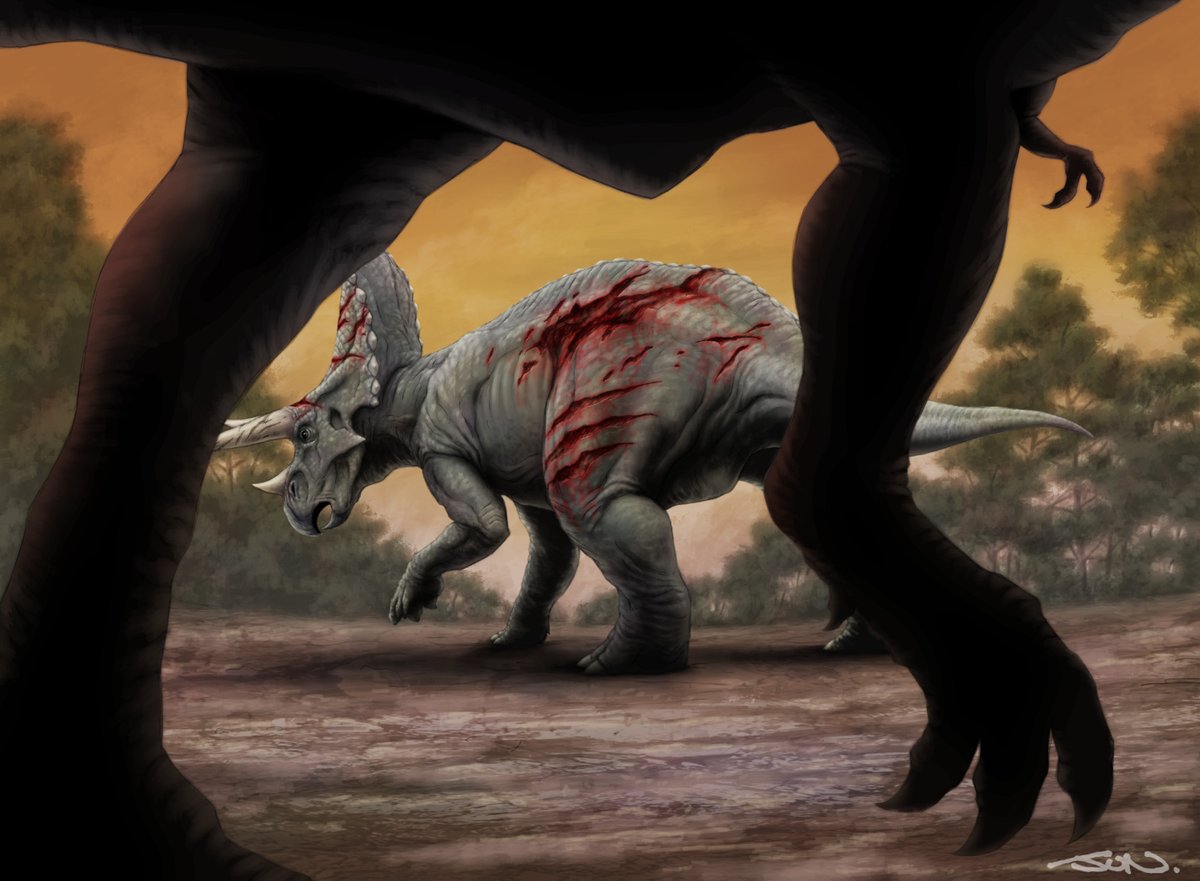 化石になる前の恐竜さん🦖 #化石の日 #Fossil #恐竜 #Dinosaurs #Prehistoric #イラスト #illustration #永岡書店 #トリケラトプス #Triceratops (永岡書店「恐竜パーフェクト大図鑑」)イラスト