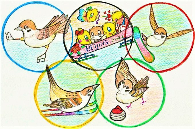 #illstration #イラスト #北京オリンピック #Beijing2020 開会式会場「鳥の巣」 雀などが巣を作ると縁起が良い🐤 中国の国鳥選びで1位になった事のある雀はとても縁起の良い鳥で「幸福の象徴」 頑張っている選手たちを心から応援したいです 世界が平和になりますように