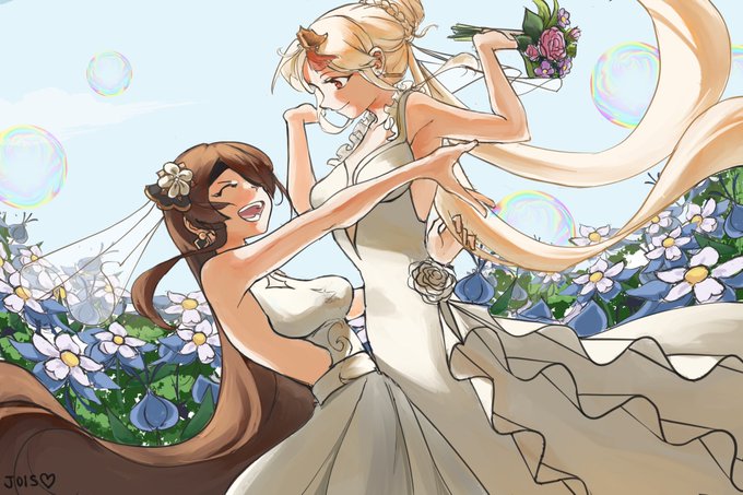 Camerawoman: Yelan I gotta do more folds practice lol, didn’t really know how to do the dresses. Anyways here’s beiguang wedding art cuz I can’t find enough #ningguang #beidou #GenshinImpact #beiguang #原神 #凝光 #北斗 #北凝