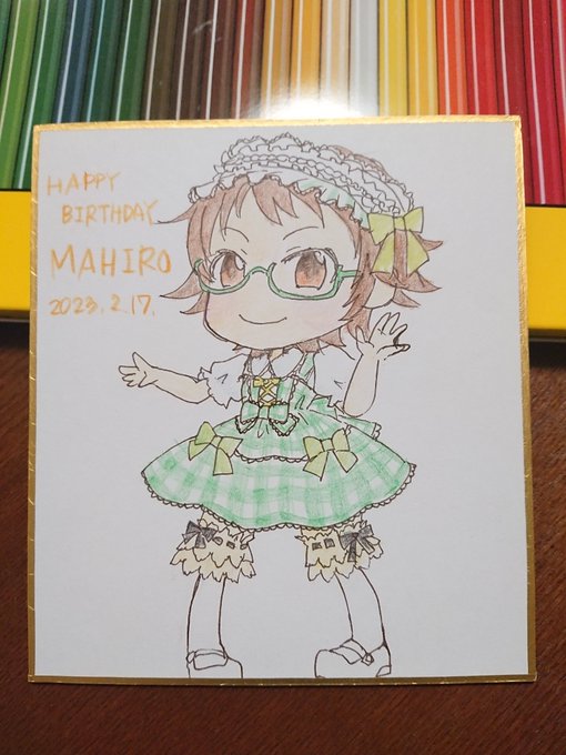 真尋ちゃんお誕生日おめでとう✨ お洋服はメタモルフォーゼさんのフリルリボンジャンパースカート&ヘッドドレスセット(ギンガムチェック)です。 #デレマス版深夜の真剣お絵かき60分1本勝負 #北川真尋生誕祭2023 #北川真尋誕生祭2023 #北川真尋