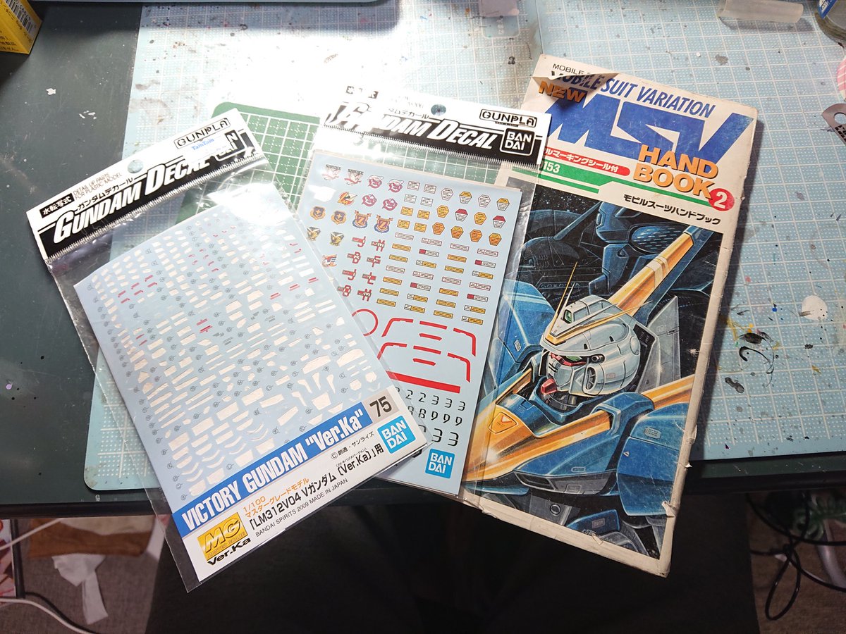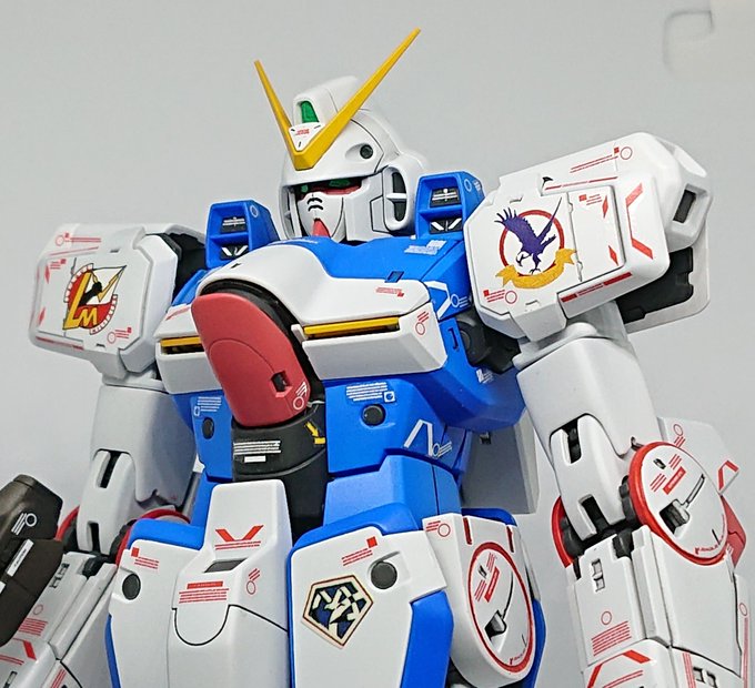 MGヴィクトリーガンダム Vアンテナの後期マーベットさん搭乗機です。 #北広島ホビーフェスタ に持っていきま~す♪ マーキングとパーソナルマークは専用デカールとハンドブック付属品から。 全部貼ったから、少しうるさくなってしまったかも‥😅 #ガンプラ #Vガンダム