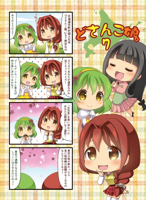 北海道市町村擬人化 #どさんこ娘 。 同人誌の全アップはご容赦お願いしたいということで気になると仰って下さる方は通販もあります。 よろしければよろしくお願いします😌 #北擬展 #北海道擬人化イラスト展