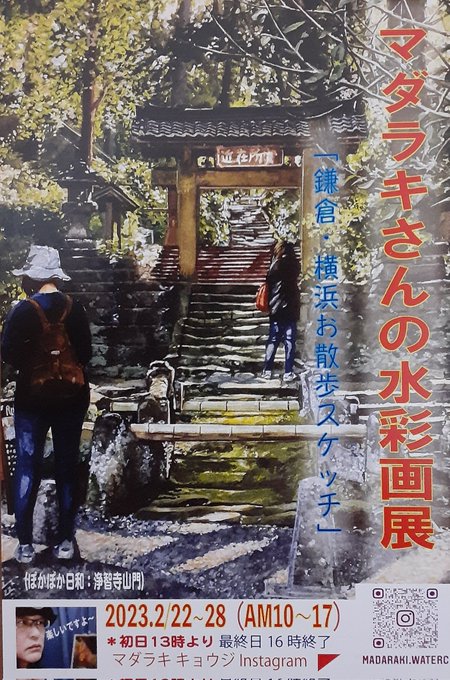 マダラキキョウジ 個展 鎌倉・横浜お散歩スケッチ BASEでは、江ノ電好きの鉄分多めの水彩画も描かれています @#アトリエ・ギャラリー #Artisans北鎌倉 さん 2023/2/22~28 #北鎌倉 #鎌倉 #マダラキキョウジ さん #江ノ電 #水彩画