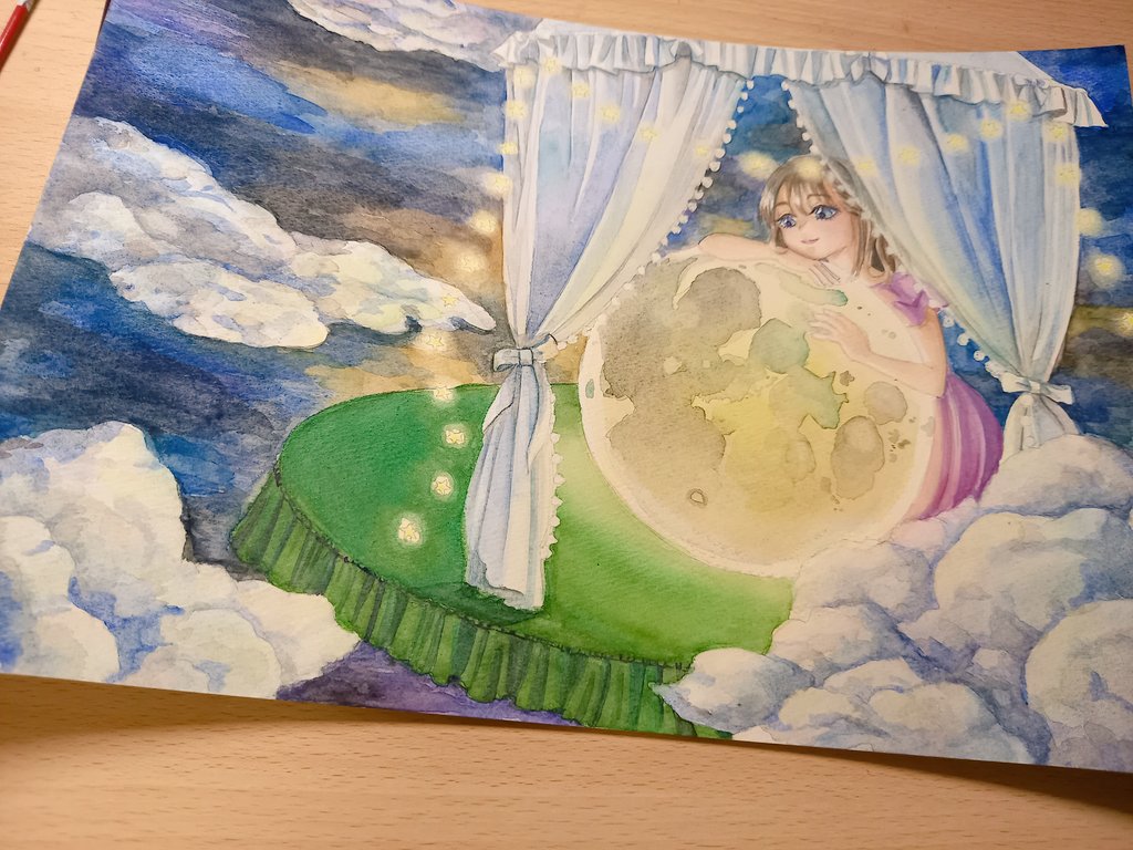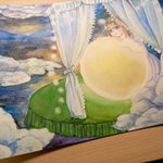 今夜は #十三夜 そして明後日10日の満月は #ハンターズムーン 🌕と言うそうです。 "Hunter’s Moon” (2021年作、木製パネルにアクリル、サイズF3) #絵描きさんと繋がりたい #猫好きさんと繋がりたい #アナログ絵 #アクリル画