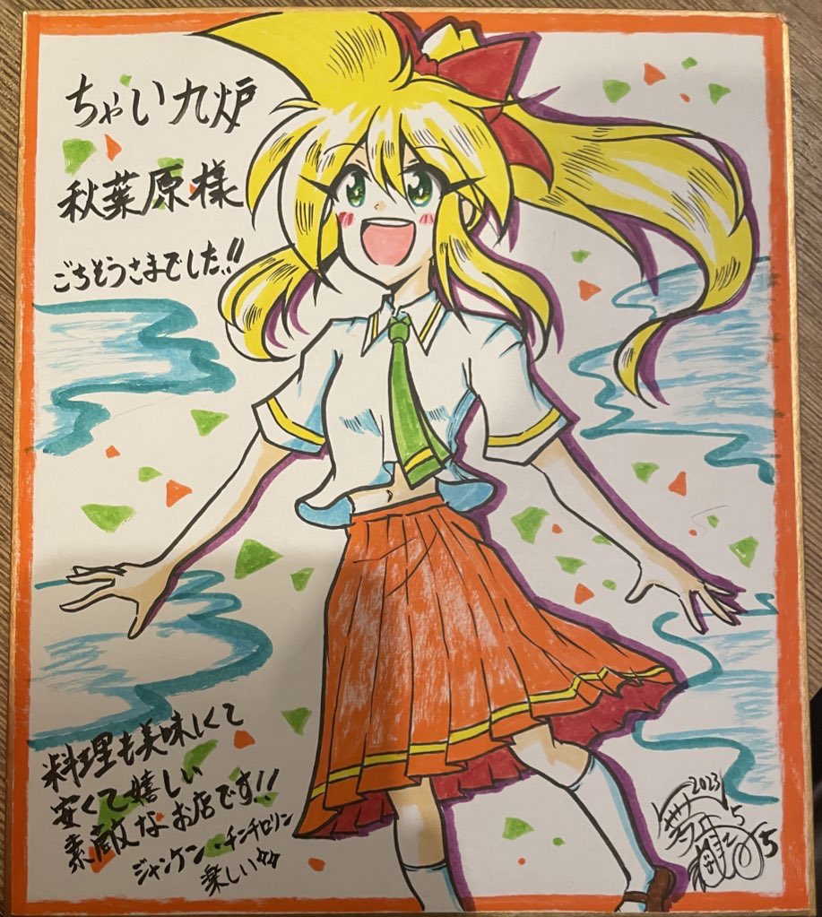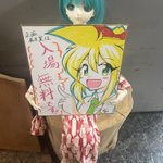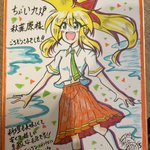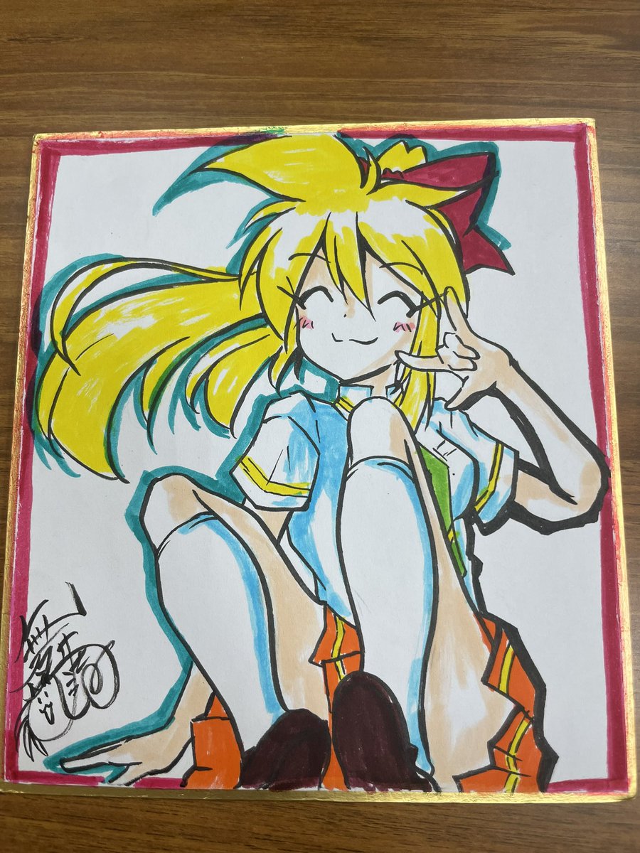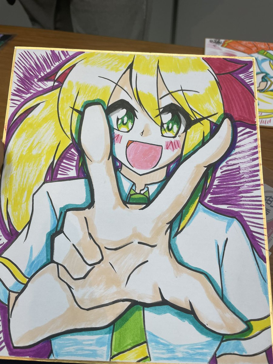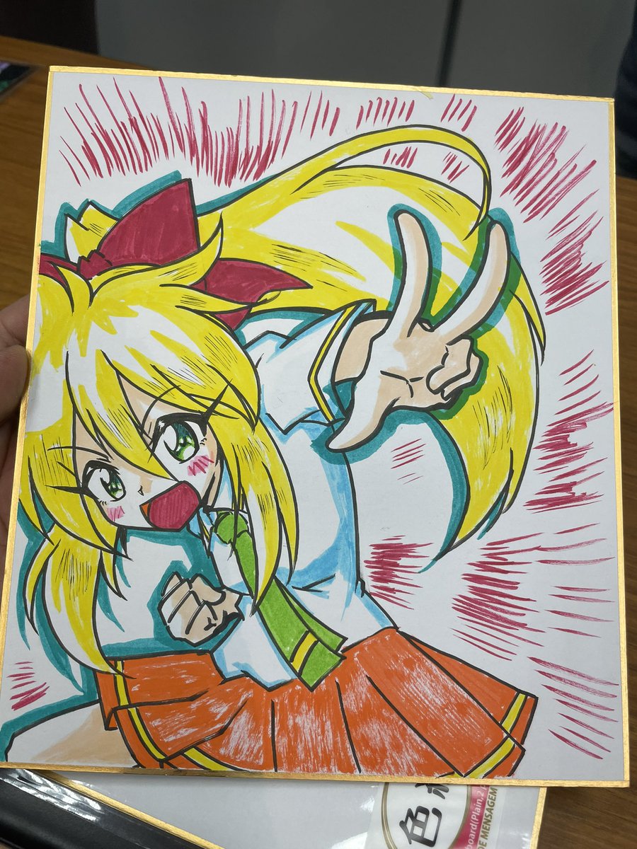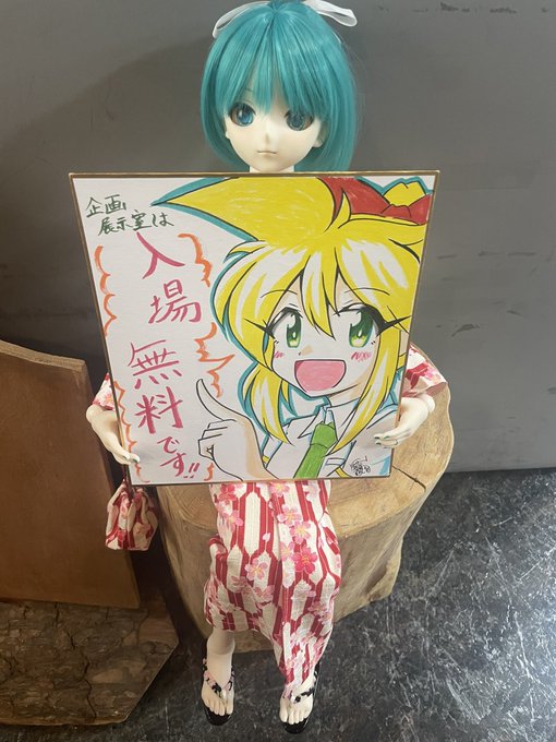 色紙完成✨ 企画展示室は入場無料です✨✨ 是非どうぞ‼️‼️ 入り口でミクちゃんに持ってもらってます(笑) ※日本最古の石博物館の入館料(一般300円)はかかります #七宗イラストアート展 #十文字ミコ