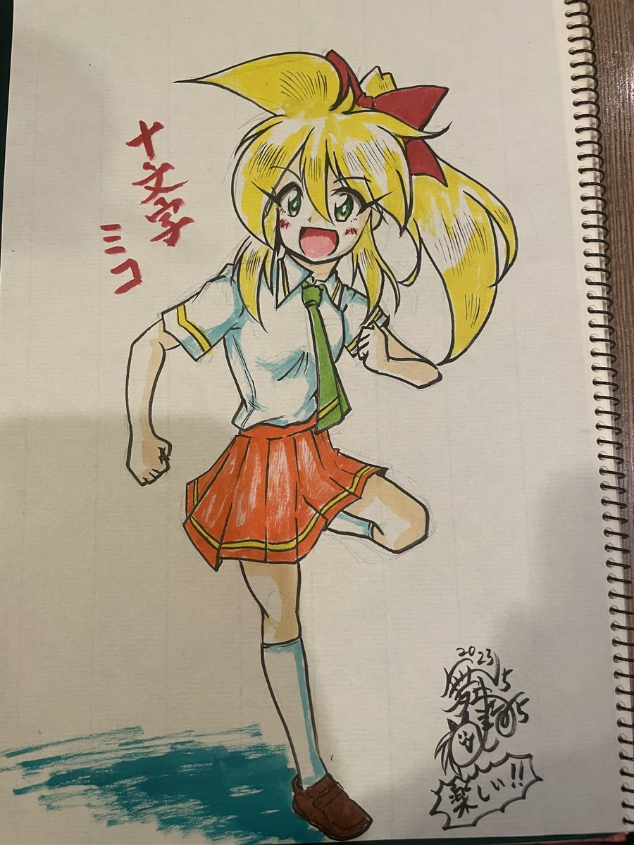 @ItinohasiMiharu 舞調さん、こんばんは✨ 後れ馳せながらですがお誕生日おめでとうございます✨🎉 久々に #十文字ミコ ちゃんを描かせていただきました✨ また体操服姿です😅 今回は #秋月千秋 ちゃんとのツーショットです✨ 【twitter.com/ItinohasiMihar…】