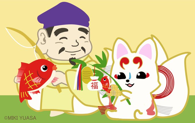 今日は #十日戎 ですね! しおさんがご近所の神社で巫女さんのお手伝いをしていると聞いて、インちゃんときんちゃんもお詣りに来ました✨ 巫女さん姿のしおさん可愛いね!💕 ごまさんに頼んで写真をパシャリ📸 なんだか良い運気が来そう! #イラスト #わふわふみゃふみゃふ