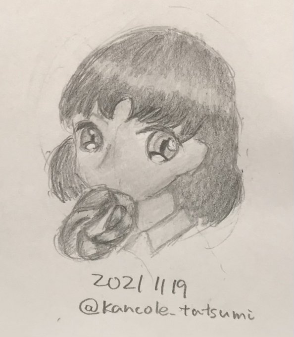 #艦これ版深夜の真剣お絵描き60分一本勝負 #艦これ版真剣お絵描き60分一本勝負_20211119 #千代田進水日 福岡艦娘の千歳姉から、九州名物リョーユーパンのマンハッタンをいただきました。 #デッサン100枚に挑戦中 第56弾