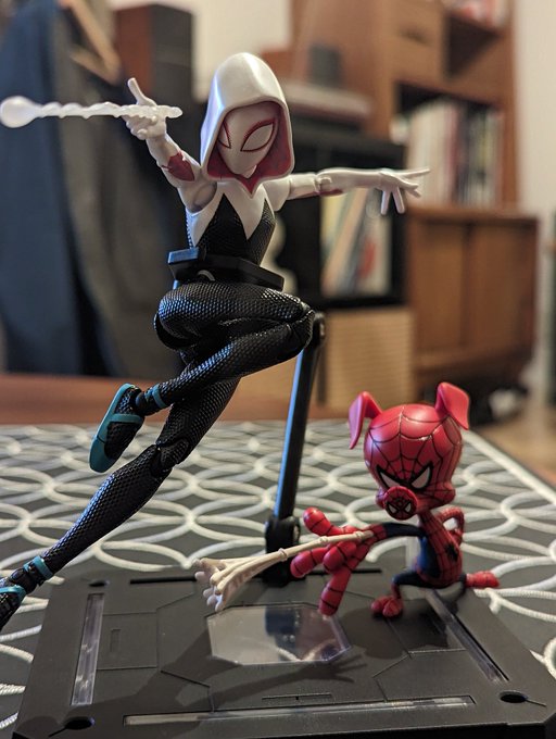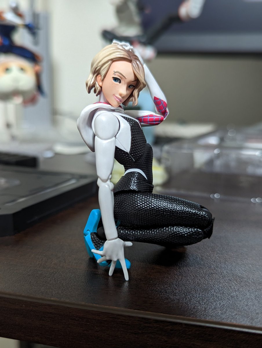 #千値練 SVアクション スパイダーグウェン(とハム) やっときた〜 相当カワイイ感じです。スパイダーチームアップ!!ペニーちゃん再販してくれ!!!!!! #spidergwen #AcrossTheSpiderVerse #オモ写 #SpiderManAcrossTheSpiderVerse