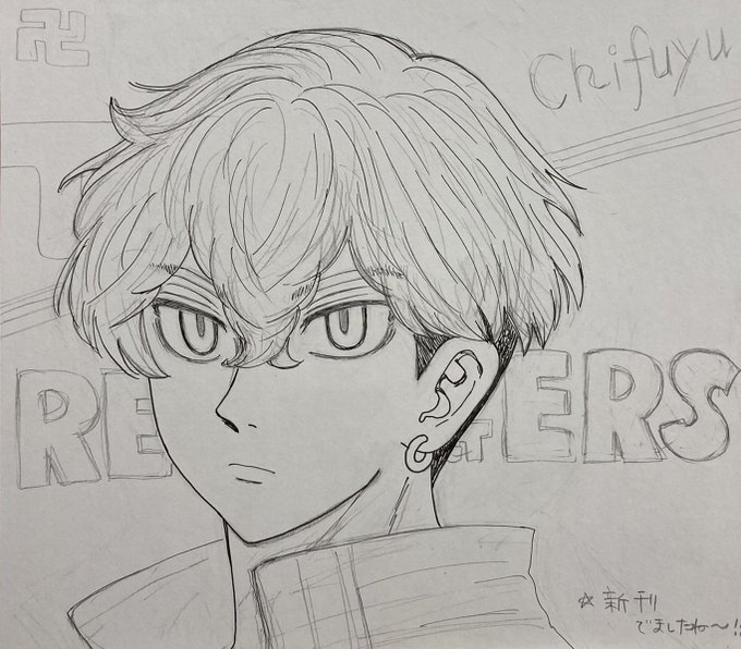 いつも、ハイキューばかりだから、たまには東リべを😁 千冬くん、描いてみました😁 東リべなら、千冬くんが好きです😁 蛍くんか、千冬くんかと言ったら、蛍くんだけどね😆 千冬くん、ごめん😂 #東京リベンジャーズ #千冬 #模写