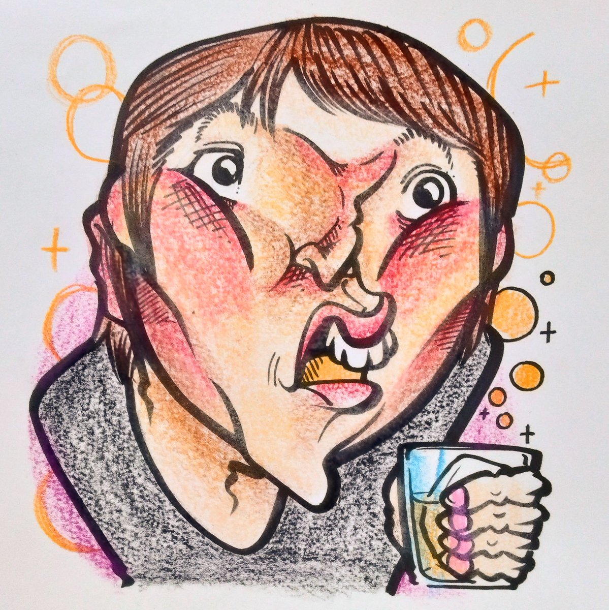 🍀描いてみました🍀 おはなしとお酒って幸せですね #千原ジュニア #ヘベレケ #お酒 #お酒好きな人と繋がりたい #似顔絵 #caricature #絵描きさんと繋がりたい #絵柄が好みって人にフォローされたい #イラスト #イラスト好きな人とつながりたい #一日一絵