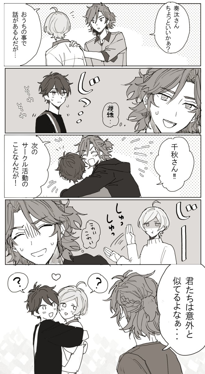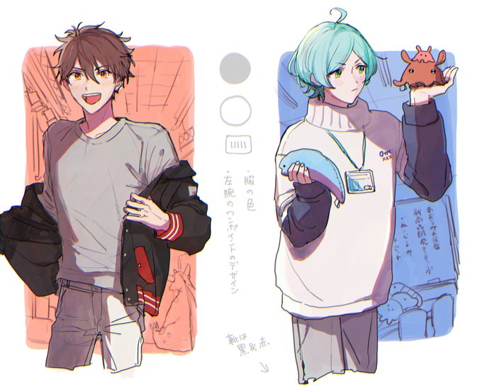 #千奏版深夜の60分一本勝負 お題『おそろい』 すみません遅刻のうえ+3hです… 春夏服の🔥黒🌊白からの、秋冬服おそろい灰色ってなんなんだろうなって思います(感謝)あと左腕のやつもなんか少し似てる気がする…