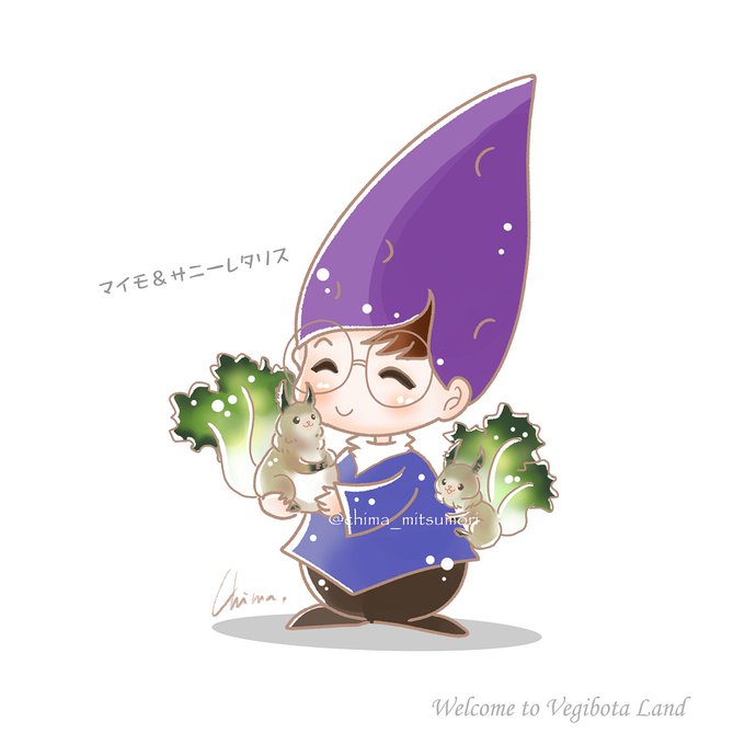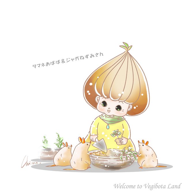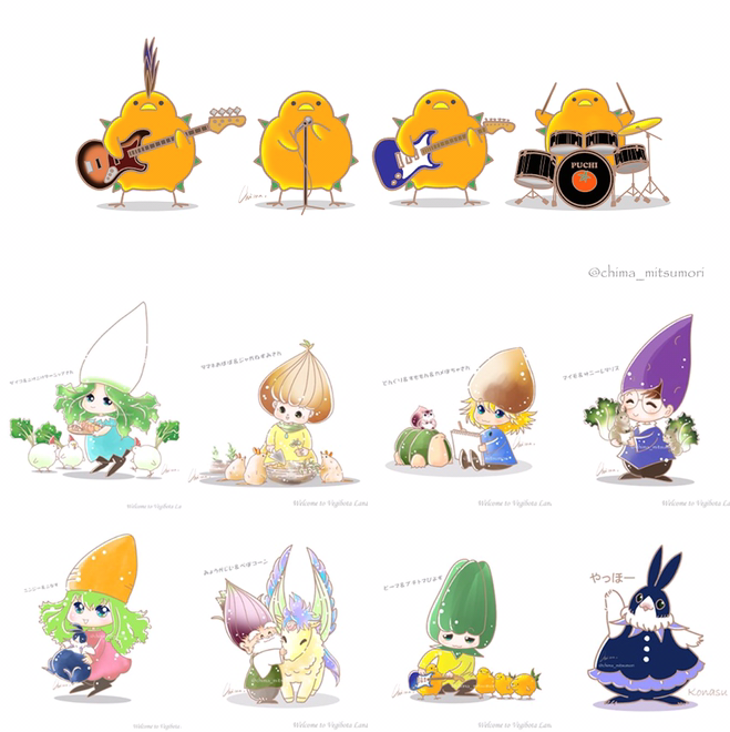 だいこんの妖精“ダイコ”と カブにわとりの“こけこけターニップさん” #イラスト #創作イラ #オリキャラ #絵柄が好みって人にフォローされたい #ベジボタランドの仲間たち #千魔箱のキャラまつり