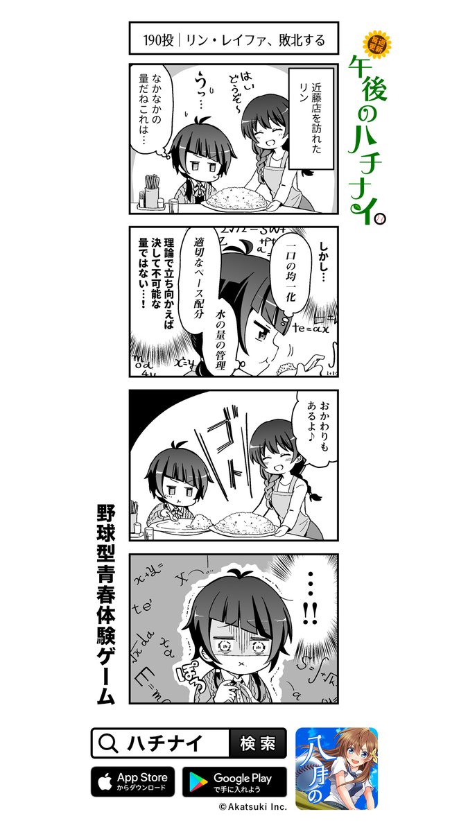 【ゴゴハチ】 女子野球部員の日常風景をユルユルとお届け 「午後のハチナイ」 190投|リン・レイファ、敗北する 最新話『策謀と裏切りの聖夜祭』はアプリ内の「放送部」でチェック! hachinai.com/gogohachi #八月のシンデレラナイン #ハチナイ祝ハーフアニバーサリー #4コマ漫画 #午後のハチナイ