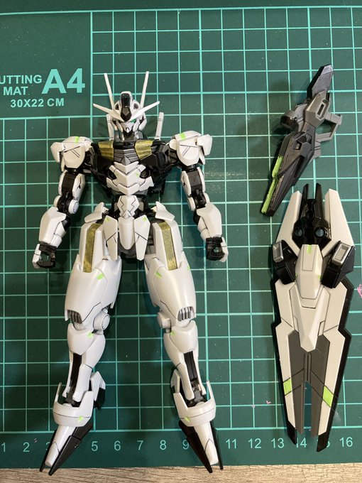 明日からデカールワーク。なかなかいい感じに塗装できた。蛍光グリーンで正解だったかな。#午後9時からのガンプラモデラー #水星の魔女 #ガンダムエアリアル #HG #俺達のアナザー #ガンプラの画像貼るとRTされると聞いて