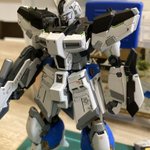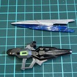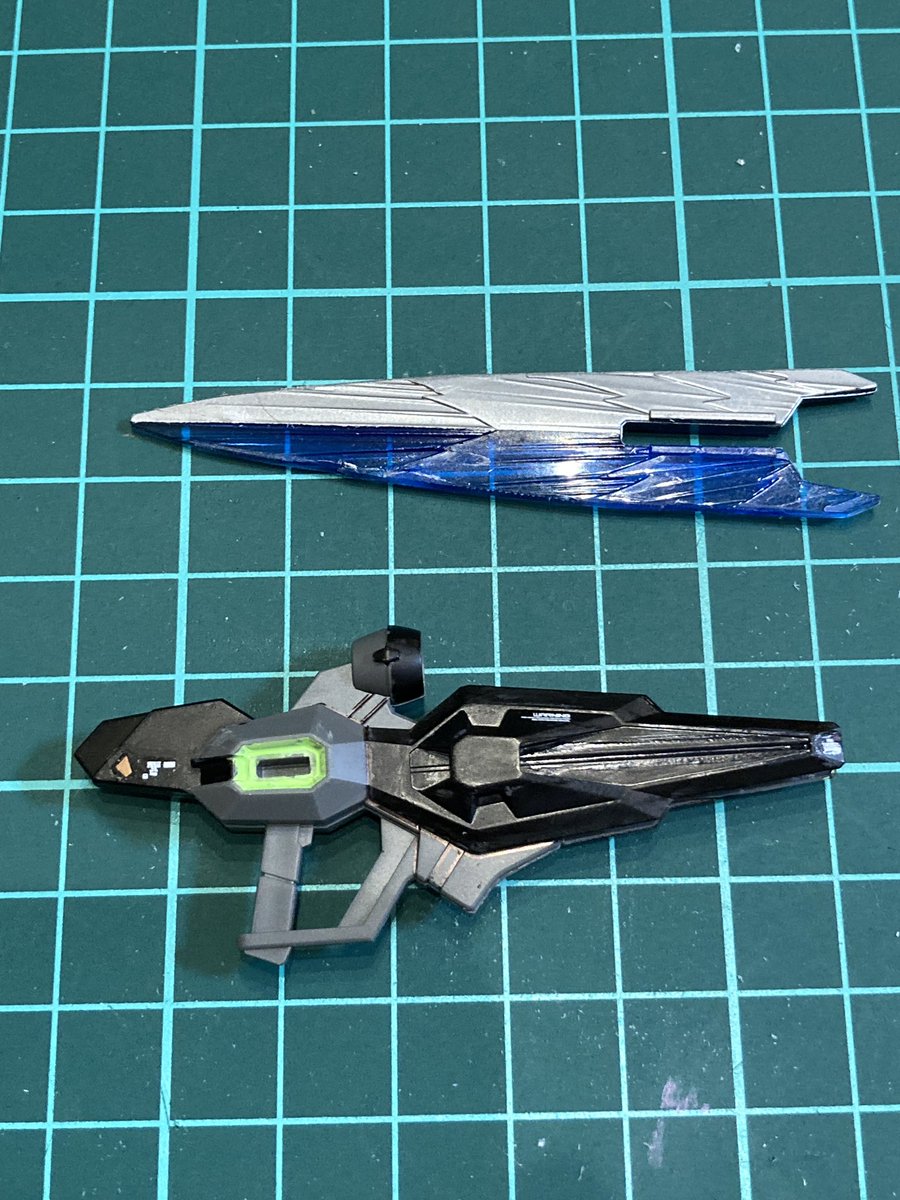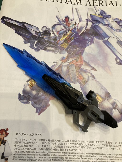 これがこう。 武装に一捻りしたくてクリアパーツを削りマスキングして半分だけシルバーで塗装。デカールも少し追加。 #午後9時からのガンプラモデラー #水星の魔女 #ガンプラの画像貼るとRTされると聞いて #ガンプラ