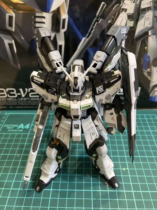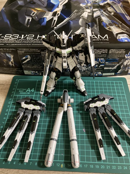 なかなかいい感じじゃん。ファンネルポッドを小型化しようと思ってたのになぜか大型化してしまった。#午後9時からのガンプラモデラー #hiνガンダム #rg #ガンプラ #ガンプラの画像貼るとRTされると聞いて