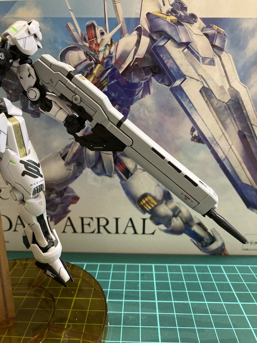 ダメ押しで武装追加。塗装し直してちょっと加工したらうまい具合に持てました。#午後9時からのガンプラモデラー #俺達のアナザー #G_Witch #ガンプラの画像貼るとRTされると聞いて #ガンプラ #ガンダムエアリアル