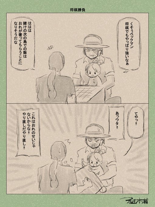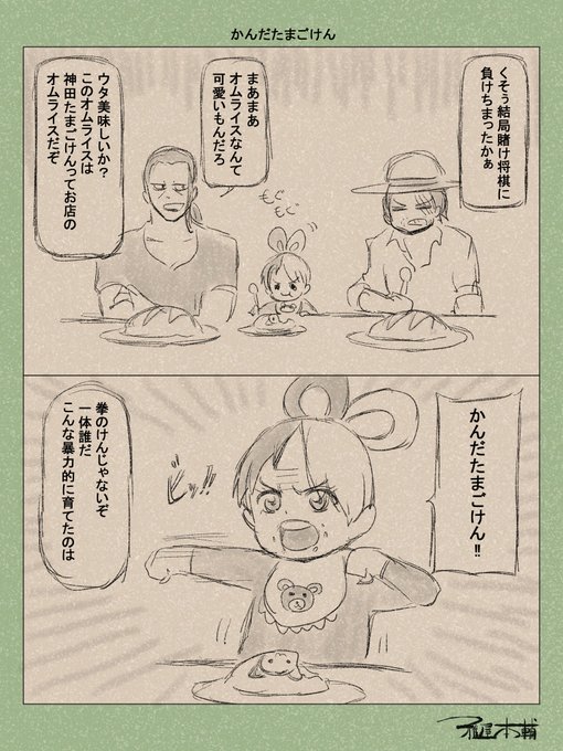 お題半ドロで 在りし日の赤髪海賊団その23です お題:カレー 縛り:しっぽ 過去分は以下から twitter.com/i/events/15683… #半ドロスペース #FILMRED文化祭 #アート部門 #ONEPIECE #FILMRED #ワンピース #シャンクス #ウタ #在りし日の赤髪海賊団 #カレーは飲み物