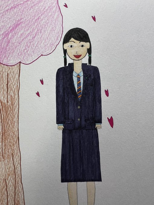 田無高校の制服 ①ソメイヨシノをバックに ②10年前に描いた夏服姿 ③最近描いた夏服姿 #画力変化ビフォーアフター #絵描きさんと繋がりたい #イラスト好きさんと繋がりたい #絵描きさんと繋がたい #田無高校 #学校制服 #高校生 #女子高生 #制服 #夏服 #半袖 #ブレザー #ソメイヨシノ #メガネ