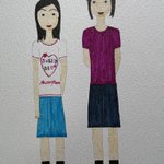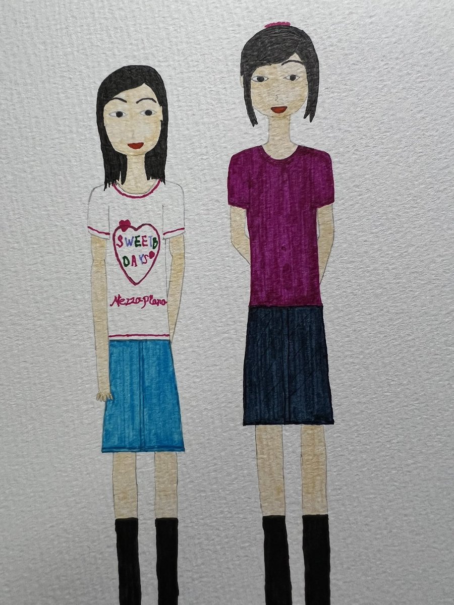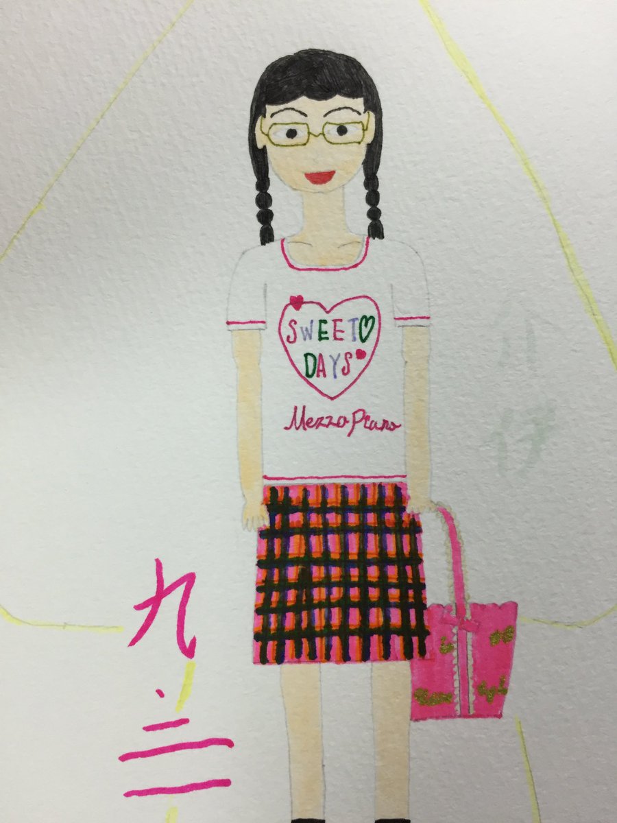 ①大分前に描いた上下メゾピアノコーデの眼鏡っ娘 ②メゾピアノのTシャツに水色のデニムスカートコーデとサマーニットにデニムスカートのコーデ #画力変化ビフォーアフター #イラスト好きさんと繋がりたい #絵描きさんと繋がたい #メガネ #メゾピアノ #サマーニット #半袖 #デニムスカート #ペア