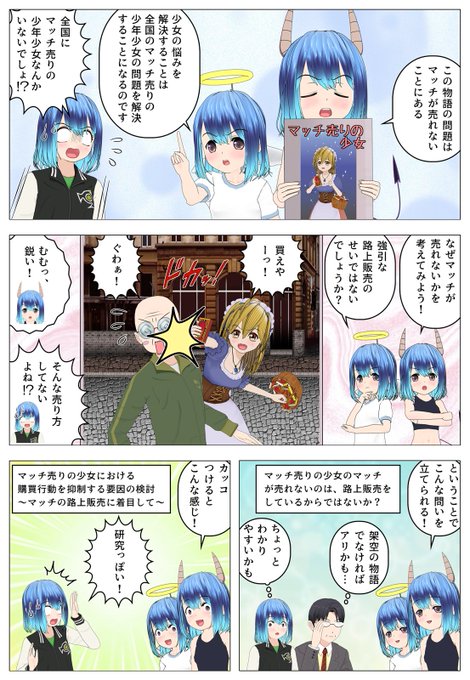 「20,000字なんて書けません!」p31 ちなみに「戦略的鬼退治」という桃太郎の卒論(curazy.com/archives/168995)があるようです。卒論の雰囲気を嗜むには良いかも。 #卒論 #卒業論文 #卒論指導 #卒論ゼミ #comipo #漫画 #漫画が読めるハッシュタグ #漫画好きと繋がりたい #創作 #マッチ売りの少女