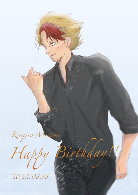 #南健次郎誕生祭2022 #南くん誕生日 南くんお誕生日おめでとうございます🎊🎉🎂🎁🎈 通知欄に去年のが戻ってきて知る朝。 諸事情により新規におたおめ絵を描く時間がないのですが、新刊に南くん描いたのでそちらで代用させてください。 憧れの勇利くんに追いつき追い越すためにガンバー! twitter.com/makisuzume/sta…