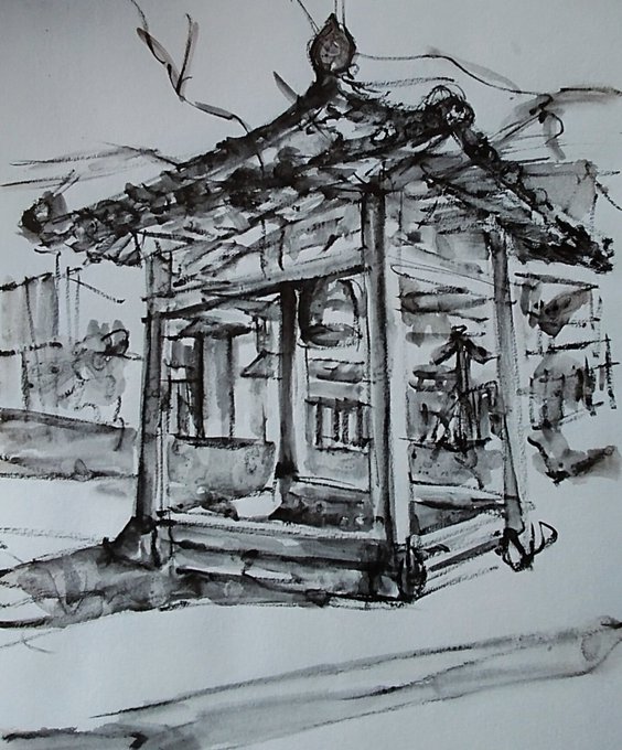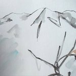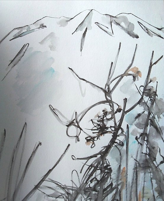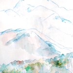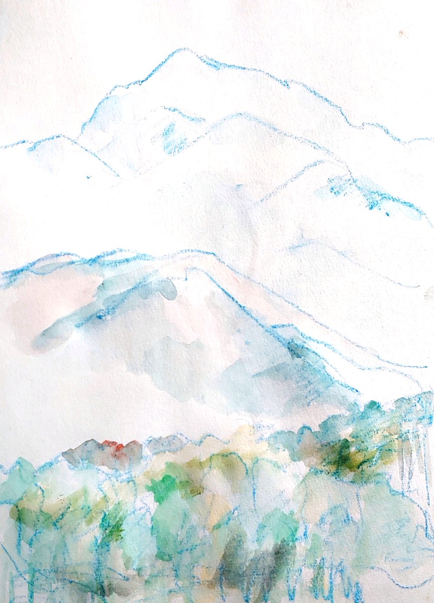 #りえこさん冒険の思い出 その711 南アルプスの麓。山々は雄大すぎるけど、その山々を見ながら散策するのは素晴らしい~かな? #絵 #旅 #水彩画 #スケッチ #watercolor #南アルプス minne.com/ritakahashi4 rieko44.base.shop