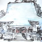 #りえこさん冒険の思い出 その352 思い出は山梨県へ。雄大な南アルプスの麓にある鐘突き堂。登山は無理でも雄大な山々を見ながらの散策は楽しい~かな? #人形 #旅 #水彩画 #スケッチ #watercolor #絵 #南アルプス minne.com/@ritakahashi4