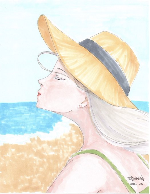 This is a reminder that it is grilling hot in the land down under . 2022/1/15 . #illustration #drawing #summer #beach #dailydrawing #dailyart #copic #downunder #イラスト #イラスト好きな人と繋がりたい #毎日お絵描き #絵描きさんと繋がりたい #夏 #南半球 #コピック #ビーチ