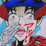 『ジョジョの奇妙な冒険SC』偽キャプテン・テニールのパロで、天草健太郎キャプテン。 「デカティン使いはタバコの煙を少しでも吸うとだな… 鼻の頭に血管が浮き出る」 #南国アイスホッケー部 #久米田康治ファンアート