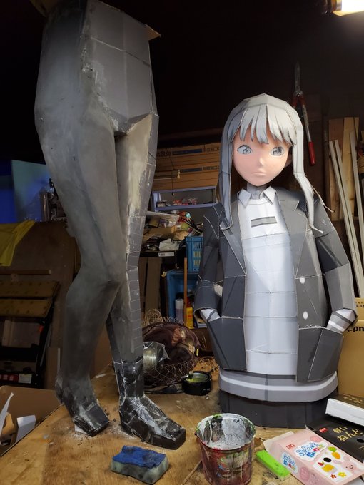 粘土盛り始めました。 いつもの通り、道具は指先と台所スポンジ。 お顔のサーモンピンクと足は黒タイツなので黒。 角を消していくように持っていくのがコツです。 片足で5箱。 #S.V #ペーパークラフト #グリッドマンユニバース #シネプラザサントムーン #等身大フィギュア #南夢芽