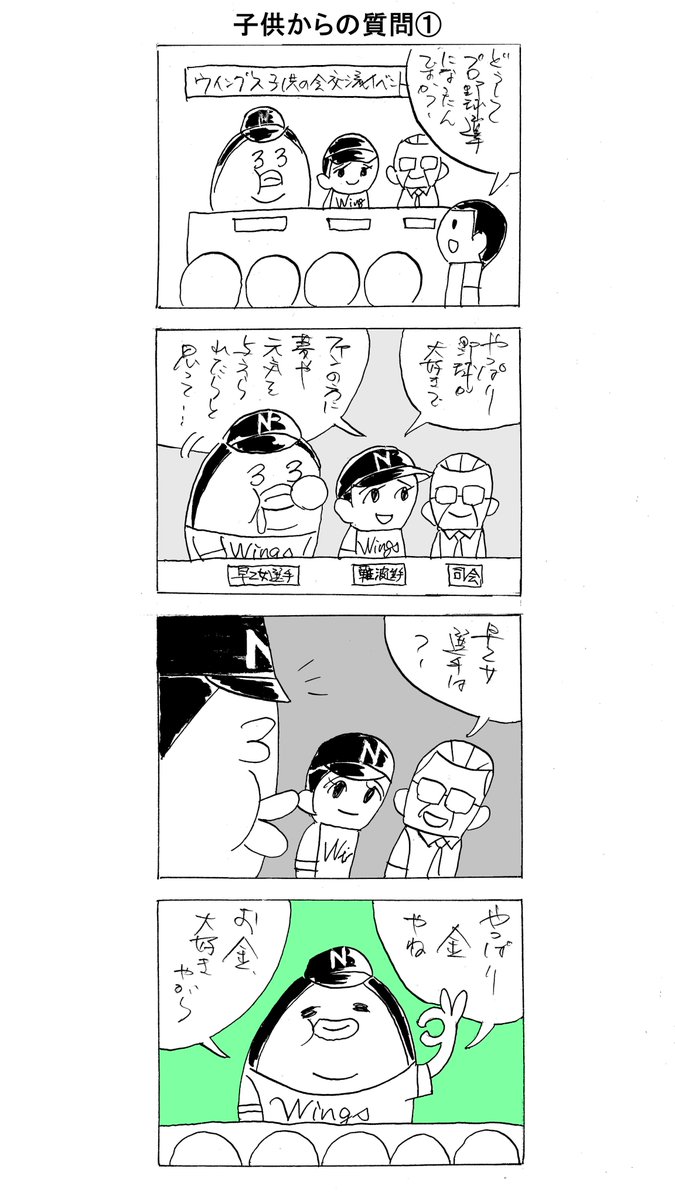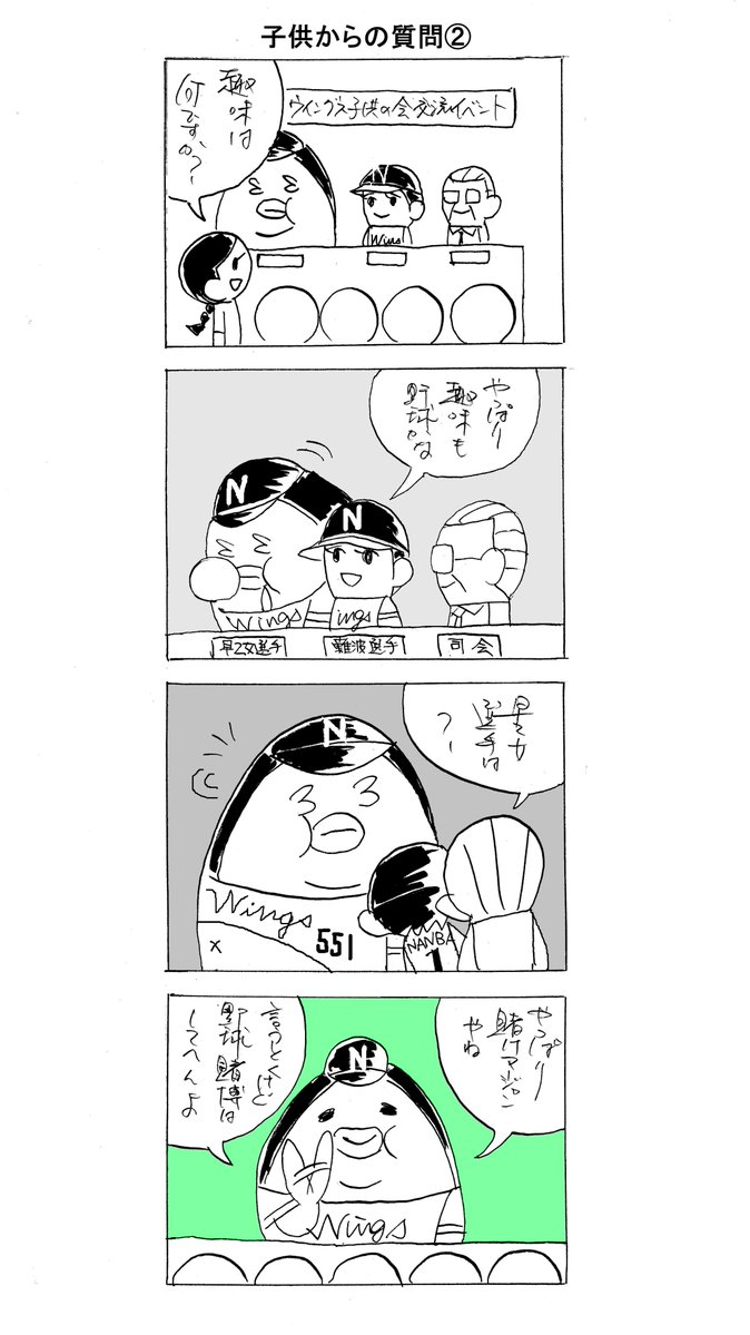 #漫画家志望さんと繋がりたい #漫画好きな人と繋がりたい #漫画が読めるハッシュタグ #四コマ漫画 #漫画 #阪神タイガース #南海ホークス 難波ウイングスに入団した美しすぎる女性プロ野球選手の活躍を描く脱力スポ根4コマ漫画「いてまえ!乙女ちゃん ~プロ野球編~」【第12話『子供からの質問①』】