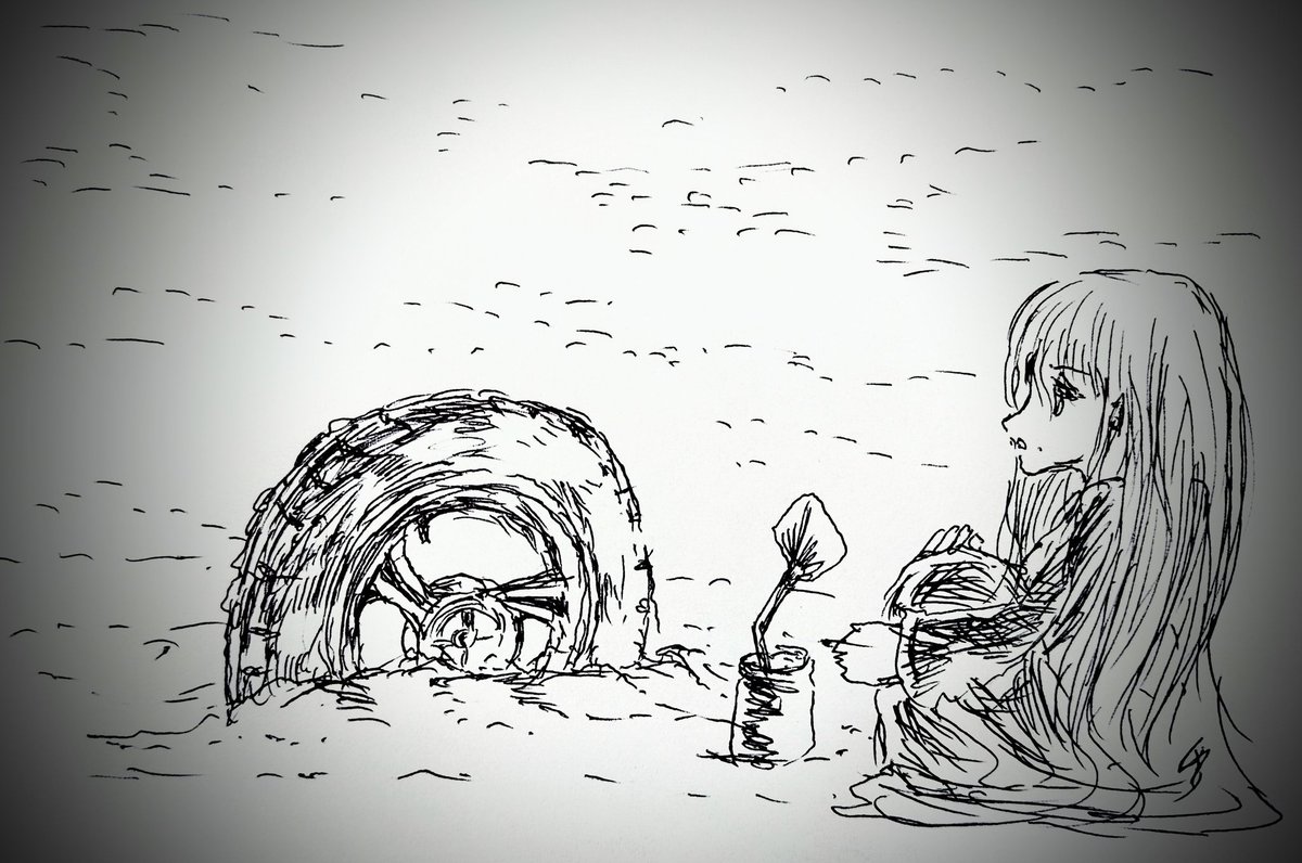 「何を作ったんだい?」 「…YAMAHA YD250のお墓」 #イラスト #絵描きさんと繋がりたい #単車 #バイク #オートバイ #脳死 #寿命 #老衰 #yamahayd250 #さようなら #ヤットデタ2号ここに死す #金が無い