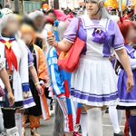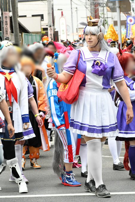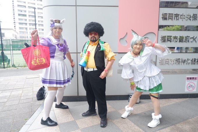 昨日の愉快なトレセン学園 📸田中さん@sonjin4545 ゴルシ:ODAちゃん@oda_09 セイちゃん:SARUSAくん@the_animism 鈴木トレーナー:ワイ #博多どんたくコスプレパレード2023