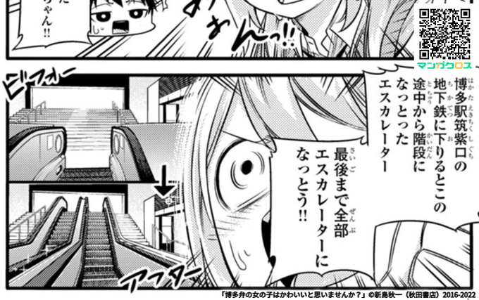 博多弁の女の子はかわいいと思いませんか?1pだけ更新されてます! 福岡の一部の人間だけに引っかかるエスカレーターの話です。 来週から、隔週掲載でしっかり再開されるので改めてよろしくお願いします!! mangacross.jp/comics/hakatab… #マンガクロス #博多弁の女の子
