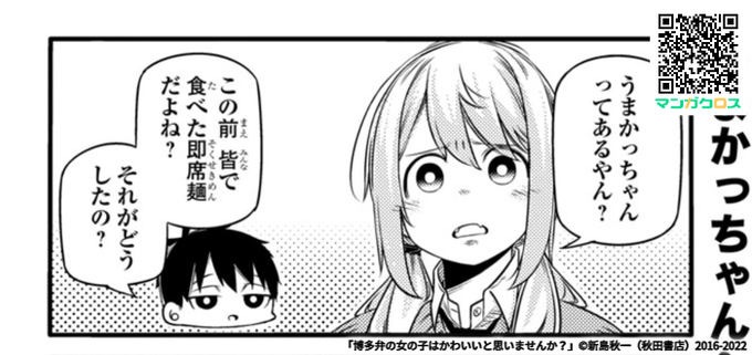 博多弁の女の子はかわいいと思いませんか?」特別編公開されました。 うまかっちゃんに一言モノ申す… mangacross.jp/comics/hakatab… #マンガクロス #博多弁の女の子